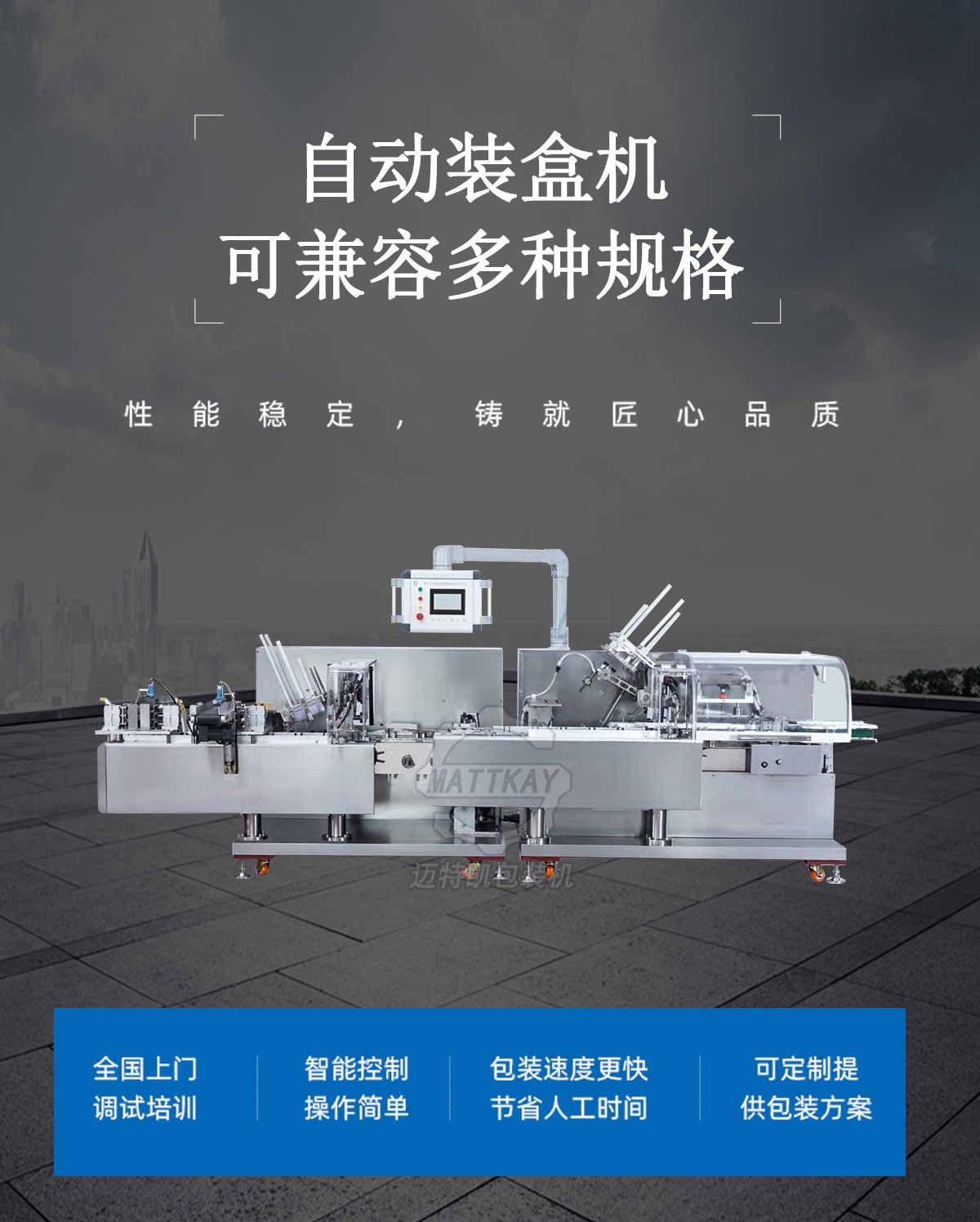 化妝品裝盒機是將面膜、洗面奶、護眼霜、護膚霜、唇膏、口紅等各種化妝護膚用品書自動裝入折疊紙盒中,并完成蓋盒動作,部分功能較全的自動裝盒機還帶有貼封口標簽或進行熱收縮裹包等附加功能。本化妝品裝盒機具備自動開盒、裝盒、封盒功能,裝盒機支持多件產品裝盒使用,速度在10-80盒每分鐘,速度可調節;也可以根據用戶需求定制滿足要求的紙盒包裝尺寸范圍,在該范圍內可以調節軌道尺寸,來替換不同尺寸的紙盒裝盒,實現一機多用的功能。